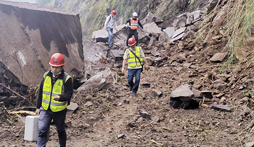 2019年 時(shí)任自然資源部副部長(zhǎng)凌月明視察川勘集團(tuán)勘查設(shè)計(jì)的西藏中尼樟木口岸滑坡治理工程