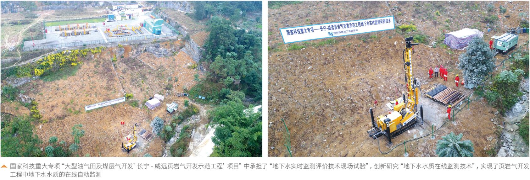 在十三五國家科技重大專項“大型油氣田及煤層氣開發‘長寧-威遠頁巖氣開發工程’項目”中,川勘集團承擔了“地下水實時監測評價技術現場試驗”子項(課題)。為實現地下水水質在線自動監測,建立地下水水質實時監測評價系統,制定頁巖氣鉆井平臺地下水環境監測規范等科研任務,川勘集團通過多年技術攻關,現建成了集數據采集、傳輸、評價、預警為一體的地下水實時在線監測評價系統,填補了頁巖氣開發全生命周期地下水實時監測預警的空白,助力打造“經濟、高效、數字化、綠色”的頁巖氣開發示范精品工程。