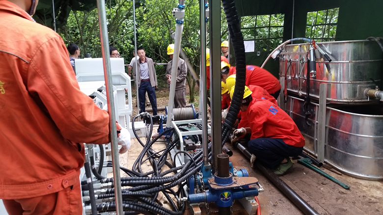 陽書記在查看項目現(xiàn)場,了解設備運轉情況及工人操作后,對項目作出指導:一是該項目是我院在深孔鉆探設備方面的革新及工藝的改革的試點項目,施工班組和管理人員務必高度重視,勇于挑戰(zhàn);二是要求項目組人員要在如何使設備經(jīng)濟高效的運轉、發(fā)揮設備功效上探索研究;三是通過該項目歷練培養(yǎng)優(yōu)秀操機手,為今后類似設備的運用儲存技術力量;四是通過對設備的熟悉、掌握,更加注重科技創(chuàng)新,以節(jié)約成本,推動我院在深孔鉆探領域的新發(fā)展。