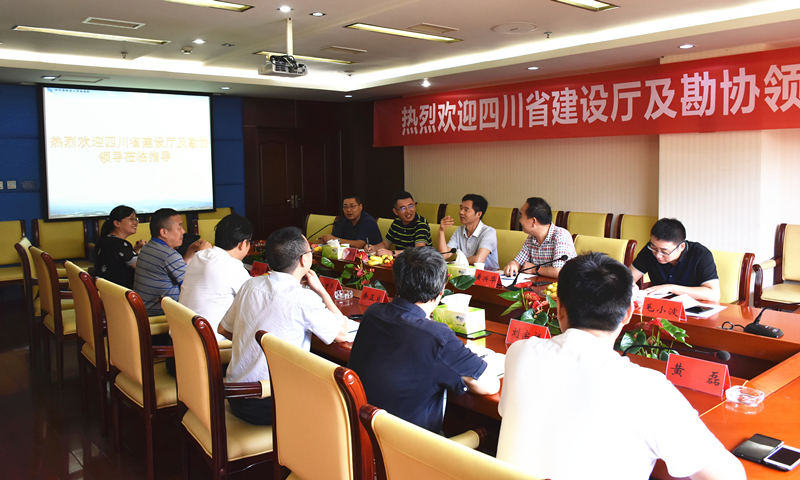 726日下午,由四川省住房和建設廳(以下簡稱省建設廳)原副廳長、省勘察設計協會常務副理事長楊光、勘查設計與科學技術處處長黃興華等組成的省建設廳調研小組到我院走訪調研并開展座談交流。院黨委書記謝大軍、院長安世澤、副院長余正良、院副總工程師劉宗祥等陪同調研。