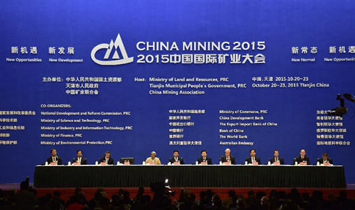 10月21日,由國土資源部、天津市人民政府、中國礦業聯合會共同主辦的2015(第十七屆)中國國際礦業大會在天津梅江會展中心舉行,本次大會是以“新常態、新機遇、新發展”為主題,圍繞礦業可持續發展、全球礦產勘查形勢、礦業與資本市場、綠色礦山、礦產資源綜合利用等專題進行研討。來自55個國家和地區的政府官員、專家學者、礦業企業代表、金融機構代表8000余人參加了此次盛會,國際礦業部長論壇、國際地質調查局長論壇以及礦業發展高層論壇等34場專題論壇和國家(地區)的項目推介會也同期舉行。